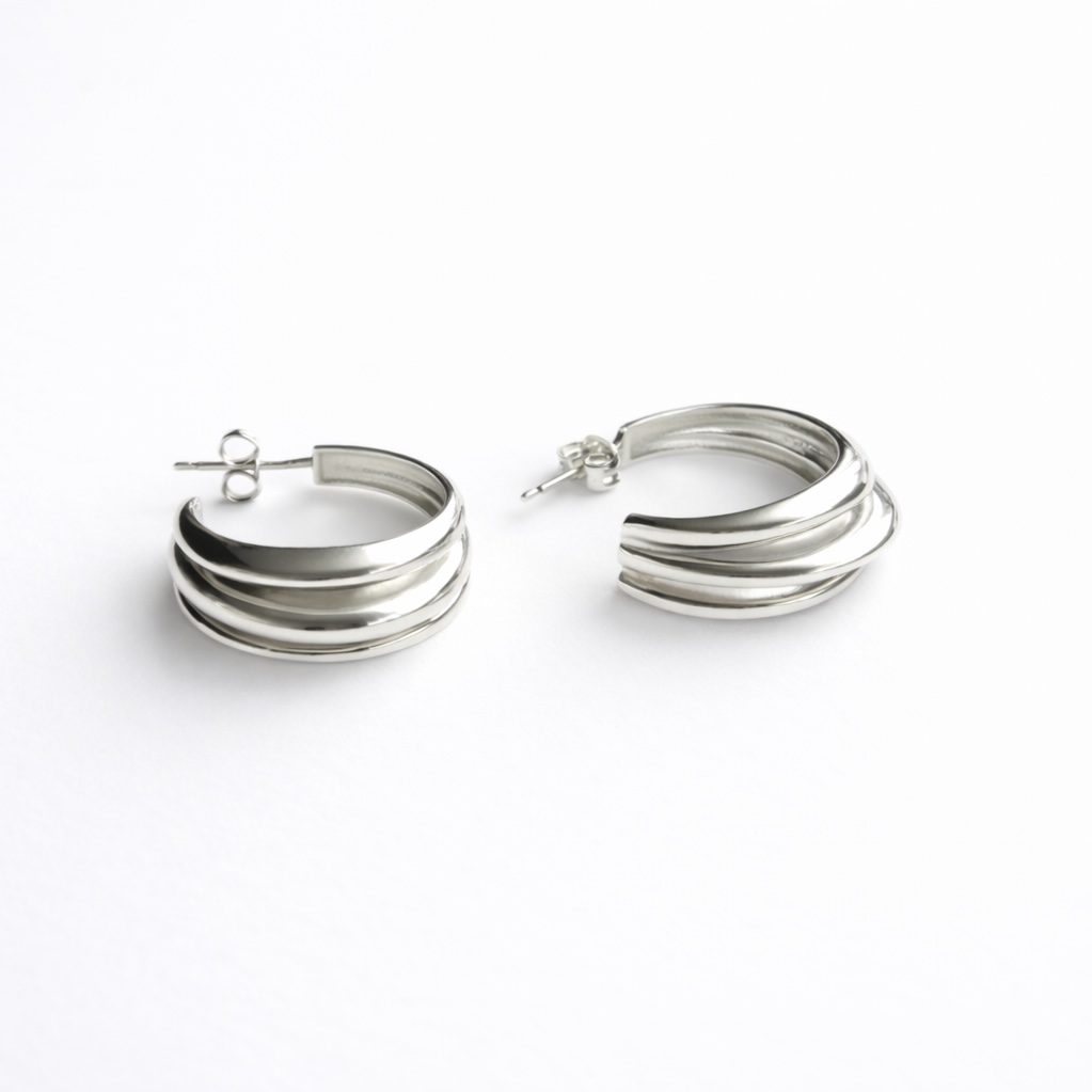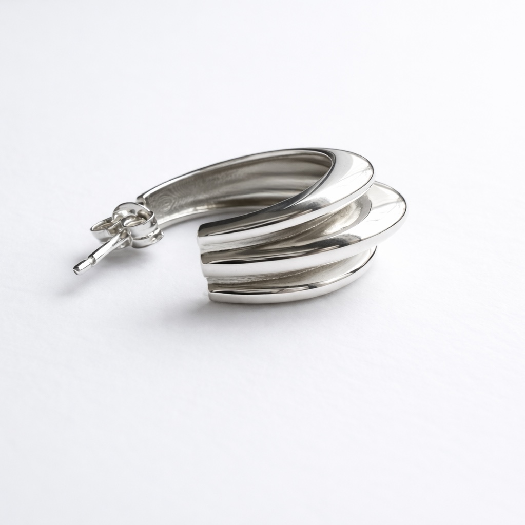 Silver in motion. These earrings from the Fluid Collection reinvent the classic hoop with organic curves and a liquid-like design. With a shiny finish that catches the light, they frame the face in a unique, sculptural way. A timeless yet modern piece, perfect to match with your Fluid ring. Made of silver 925. Each Nàrio piece is individually made to order so they take up to 7-14 days to produce them in our studio in Athens, Greece.