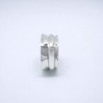 An architectural statement on your hand. This impressive ring from the Pylon Collection has a solid silver structure with a dynamic, asymmetrical design. With its unique spiral shape, it is designed to wrap around your finger with a strong “industrial-chic” feel. A unique piece on its own, it is also the main part you need to create a larger, customizable ring. Made of silver 925. Each Nàrio piece is individually made to order so they take up to 7-14 days to produce them in our studio in Athens, Greece. Select your size for the ideal fit.