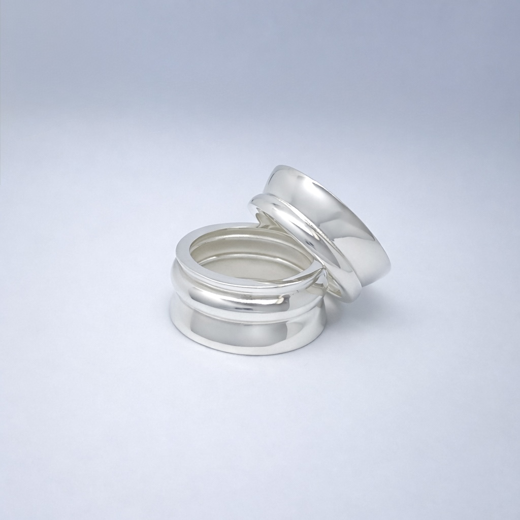 The solid base of the Pylon Collection. This minimalist sterling silver ring is the epitome of “industrial-chic”. With its clean, geometric shape, it stands strong on its own but is designed to be the perfect match. Combine it with the Pylon Echo Ring to create a unique, complete statement piece that changes form. Made of silver 925. Each Nàrio piece is individually made to order so they take up to 7-14 days to produce them in our studio in Athens, Greece. Select your size for the ideal fit.
